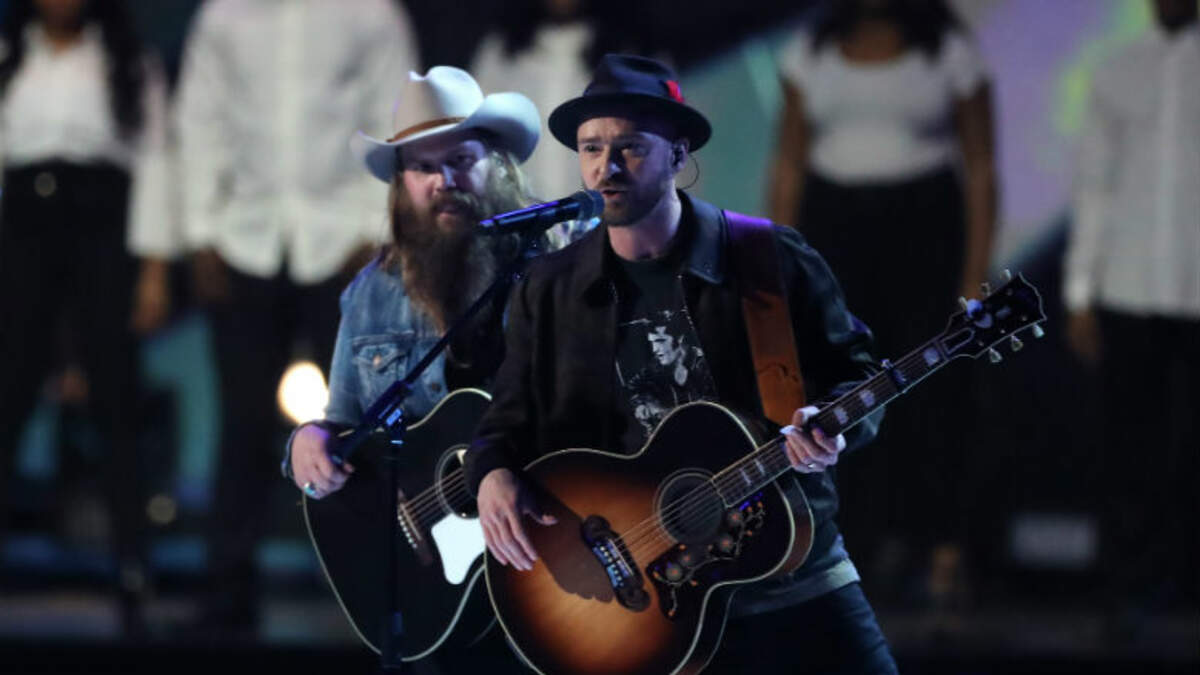 For his set, the 37-year-old star kicked things off with some fancy footwork to "Midnight Summer Jam," a new cut off his recently-released LP, Man of the Woods. Timberlake also brought some star power to the performance when he invited special guest Chris Stapleton to the O2 Arena stage for a collaboration of "Say Something." Front and center of the elaborate staging, the pair stood side-by-side with their guitars in-tow to croon in harmony for the collab. Now, if the Foo Fighters pull through with their promise to perform "from a giant log cabin," it'll surely continue on with some sort of Lumberjack theme for the evening.